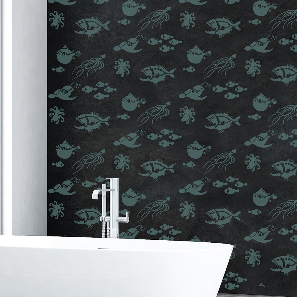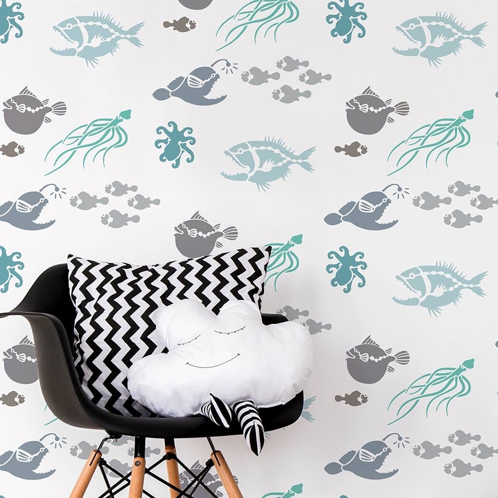 Sea Creatures stencil for walls nursery stencils nautical decor Deep sea creatures stencil nautical stencil pattern fish stencils