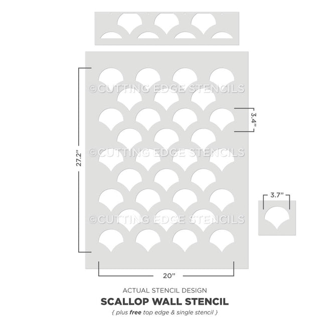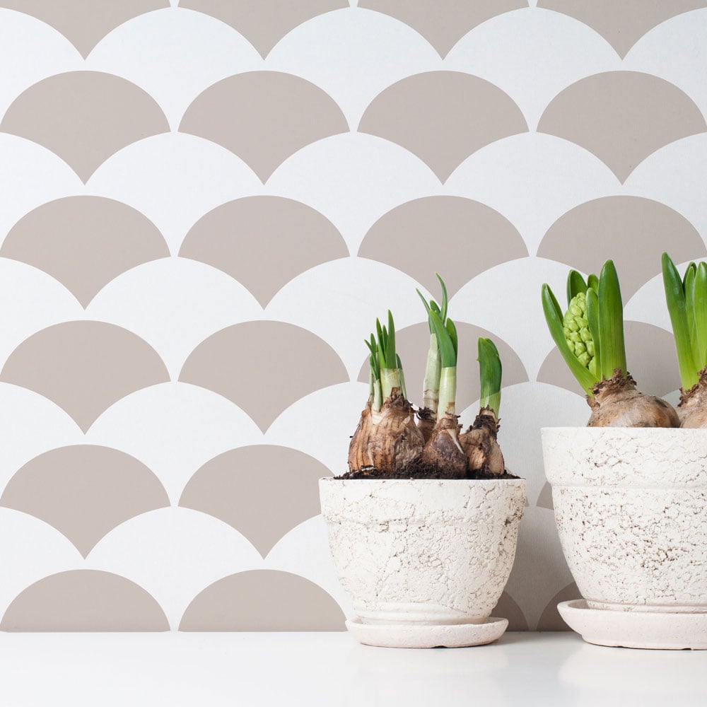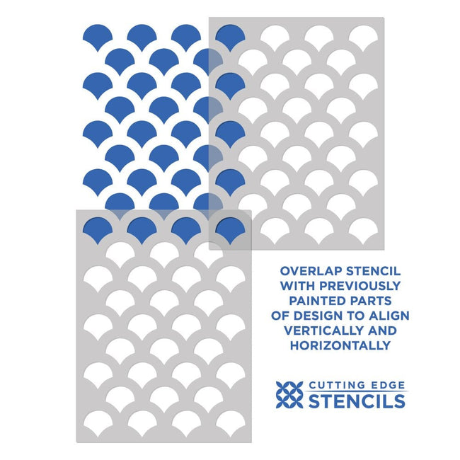 Trendy allover stencil Scallop. Try it for your next DIY wall decorating project! Reusable wall stencils give you a look of designer wallpaper at a fraction of the cost.