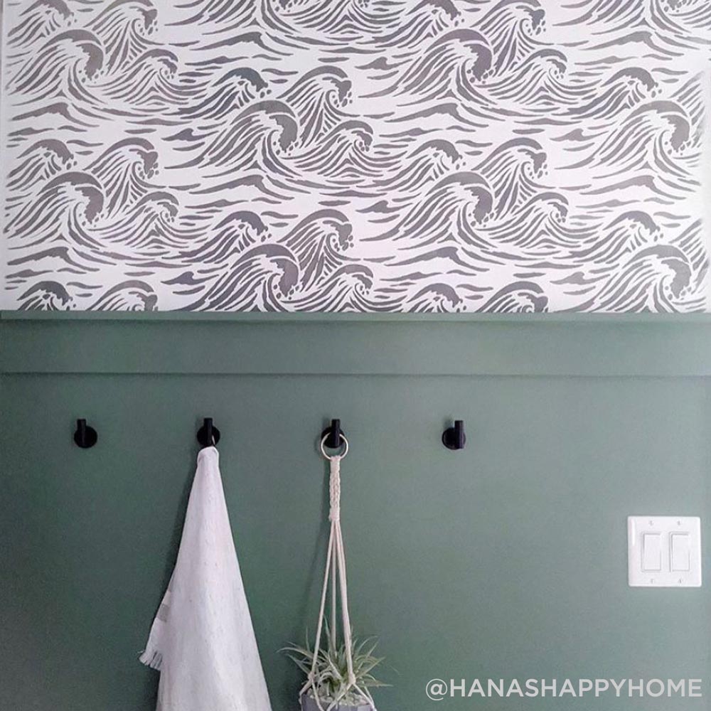 Sea Waves Allover Accent Wall Sea-Waves-bech-decor-stencil