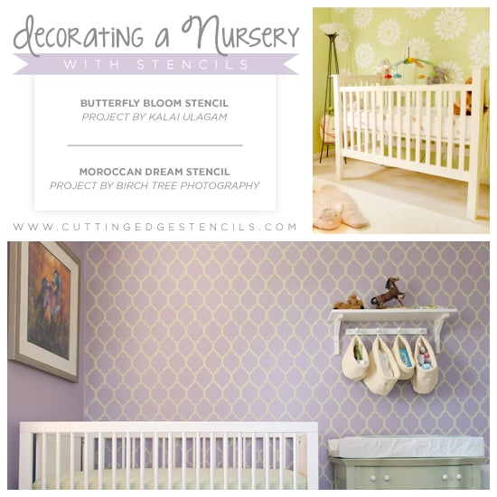 Nagoya Allover pattern. She wanted to use a light gray that she had used in several spots of her home. She said, " I like this option because I love how really white rooms look with natural colors of wood." The plan was to use the stencil in a light gray and white.