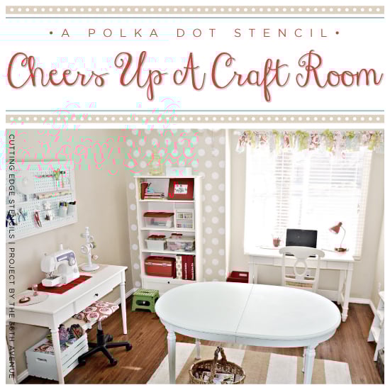The first thing Linda did was repaint the space using Dutch Boys' Big Sky Blue Paint, a soothing shade of blue. The bedroom has a vaulted ceiling so she painted the ceiling this gorgeous hue and then carried it down along the walls. The new hue dramatically changed the look of the space. Once the space was painted, she was ready to create her feature wall behind the bed. Linda selected our Leopard Skin Allover Stencil, one of trendy new geometric patterns. She used painters tape to keep her stencil in position and our clip-on stencil level to ensure her stencil was placed evenly on the wall. She painted the spotty pattern on the wall using a dense foam roller. Be sure to check out her blog for the step by step process.