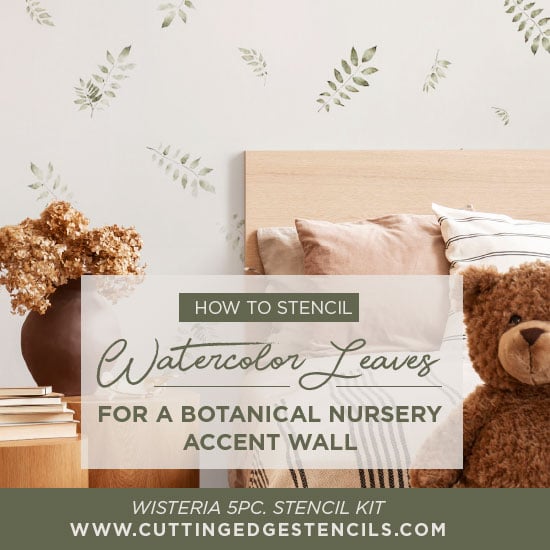 Watercolor Nursery Accent Walls Made With Affordable Leaf Stencil!