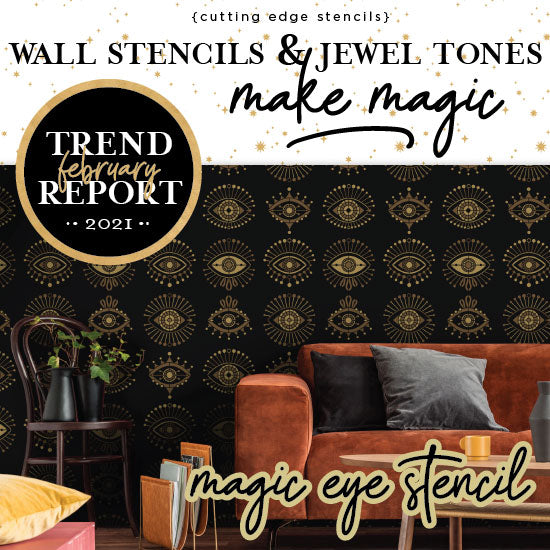 Welcome! Cutting Edge Stencil's February Trend Report is all about how you can incorporate a celestial wall stencil and jewel tones to create ...