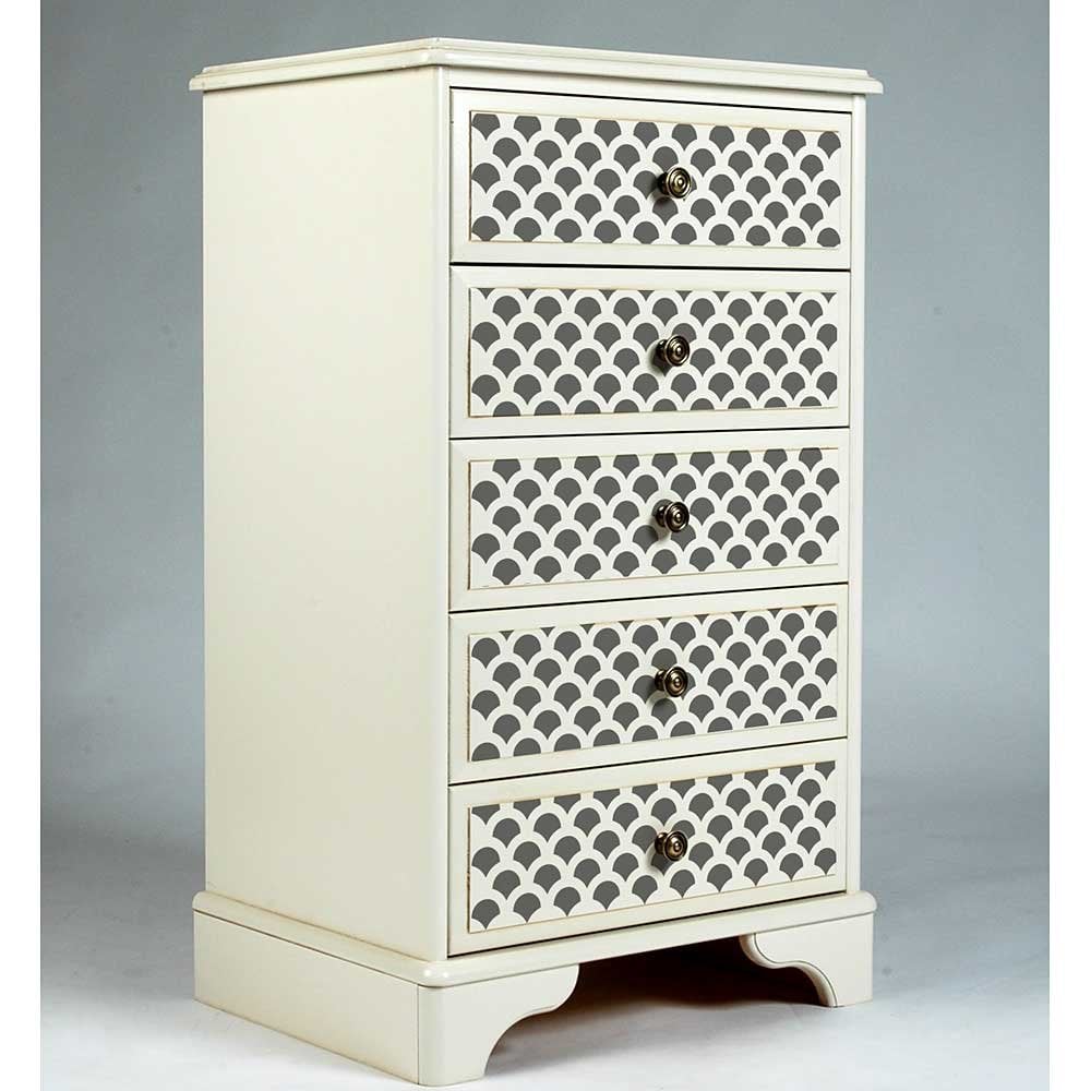 Our Furniture stencils and Craft stencils are perfect for smaller DIY home decor projects where a wall stencil would be too large. Use our craft stencils for stenciling your own designer pillows, trays, lamp shades or curtains. Our furniture stencils are perfect for transforming garage sale furniture finds into beautiful decorative pieces. It doesn't end there: try stenciling kitchen backsplashes, doors, table tops, picture and mirror frames, or create your own work of art on canvas. Decorative possibilities are endless with our versatile craft and furniture stencils! Please visit our Stencil Ideas Gallery for some furniture stenciling inspiration and creative craft ideas!