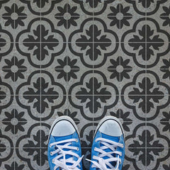 Our large floor stencils are perfect for mimicking the look of cement tile at a fraction of the cost. Whether you're covering an outdated floor or painting directly onto concrete, the process is simple: just clean thoroughly, apply an adhesive primer like Stix, and start stenciling with your favorite paint colors.
