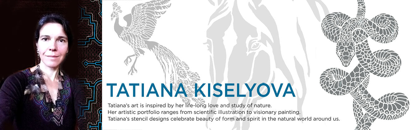 Cutting Edge Stencils has collaborated with amazingly talented artist Tatyana Kiselyova for this unique stencil line. Tatyana's art is inspired by her life-long study of nature. Her artistic portfolio ranges from scientific illustration to visionalry painting. Tatyana's stencil designs celebrate the beauty of form and spirit in the natural world around us.