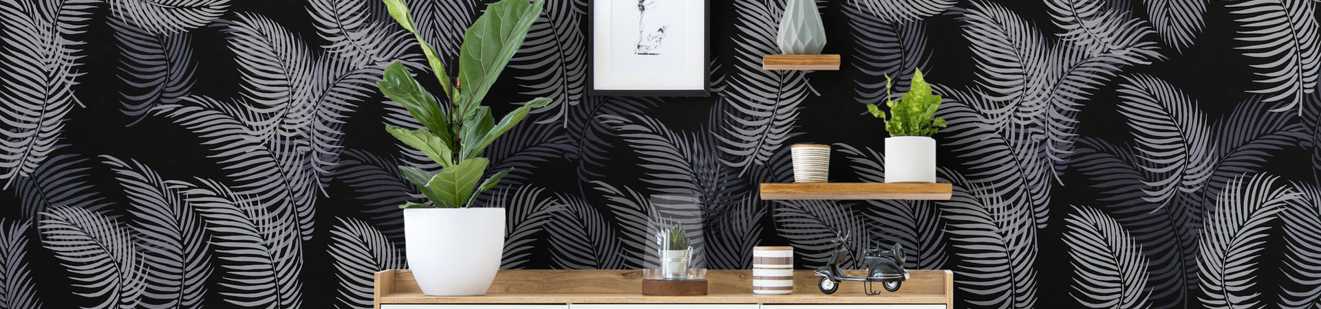Dark wall with palm frond stencils Dark wall with palm frond stencils