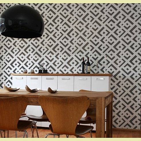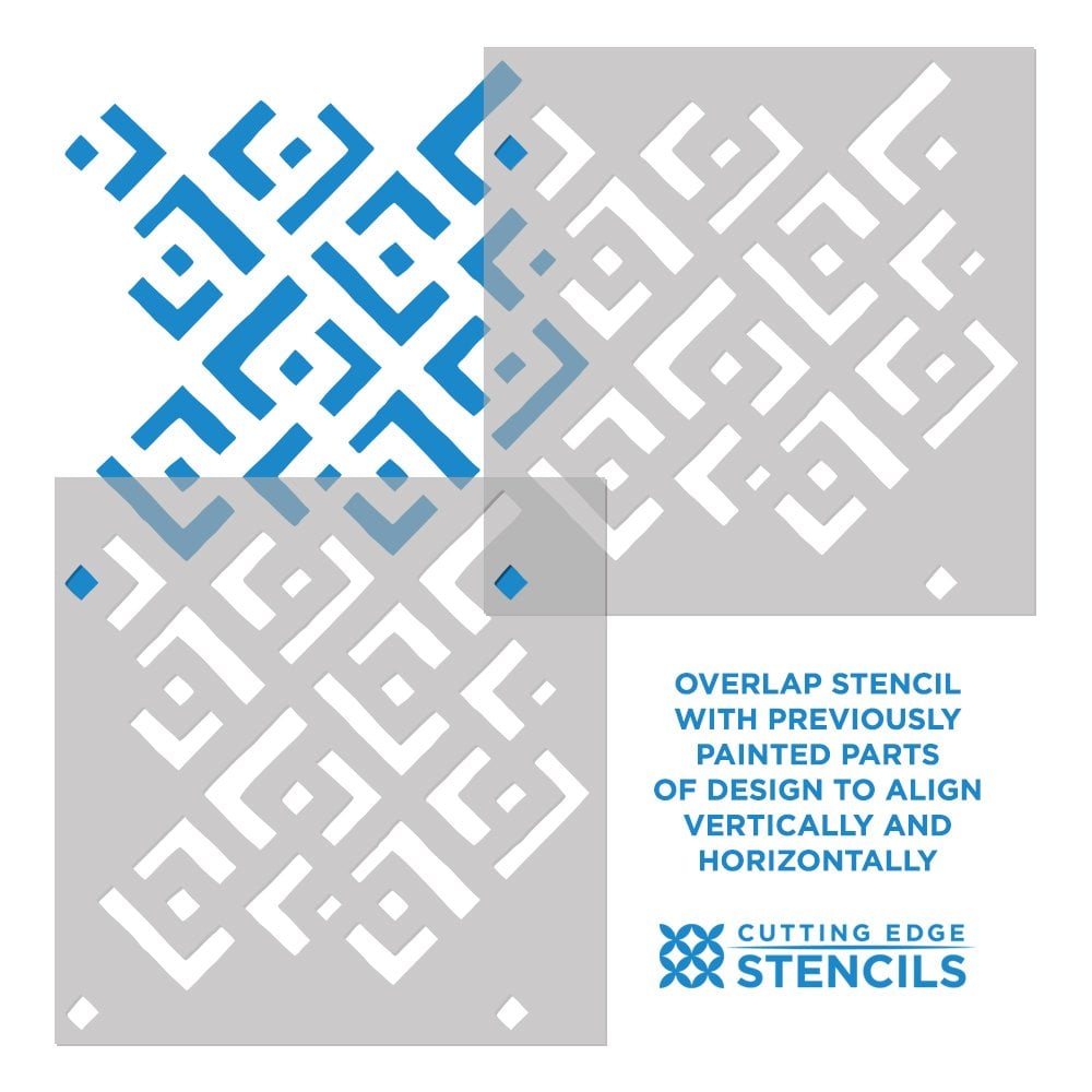 The artistry of geometric Kuba designs have been popping up in the most unexpected places lately. From chic salons in Paris to designer handbags, these bold tribal patterns are balanced, fluid and full of surprises. Our African Kuba wall stencil will add a dramatic flair to any interior decor. Use this wall stencil on an accent or feature wall, or even in the entire room. Anybody can achieve fantastic results without the hassle or cost of wallpaper!
