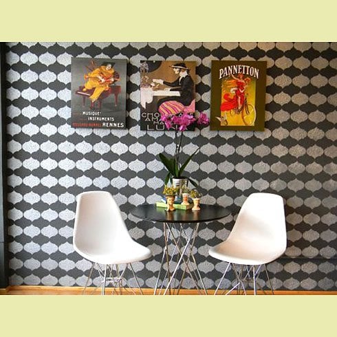 This fashionable stencil pattern will look stunning on your accent wall or done as an allover pattern in an entire room. Looks great on curtains, too!