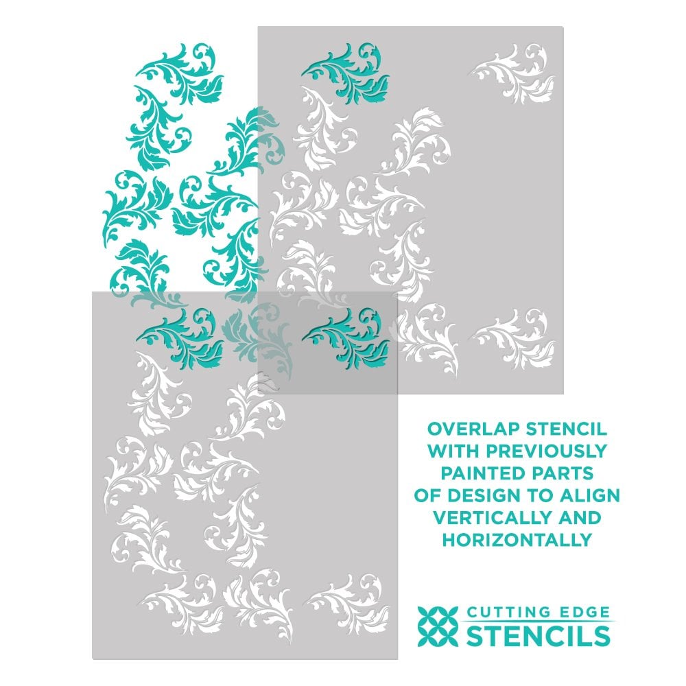 Want to learn how to stencil a damask or allover pattern? Here are the detailed illustrated step-by-step Damask/Allover Stenciling Tips.