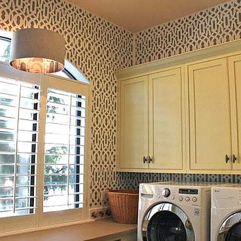 While prior stenciling experience is recommended for allover patterns, even beginner stencilers get great results! This design is recommended for feature/accent wall or entire room, and it also works for furniture and fabric embellishment.