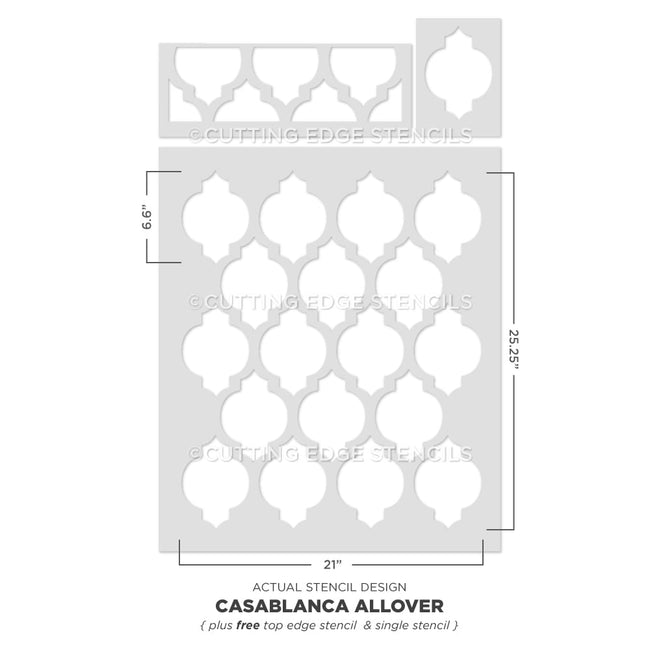 This Moroccan stencil comes with an additional FREE Top edge stencil: the upper part of the design cut as a smaller separate stencil. It makes it easy to fill the gaps close to the ceiling line.