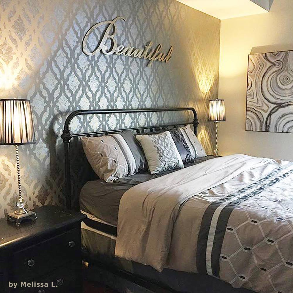 While prior stenciling experience is recommended for allover stencil patterns, even beginner stencilers get great results! This design is recommended for feature/accent wall and also works for furniture and fabric embellishment.
