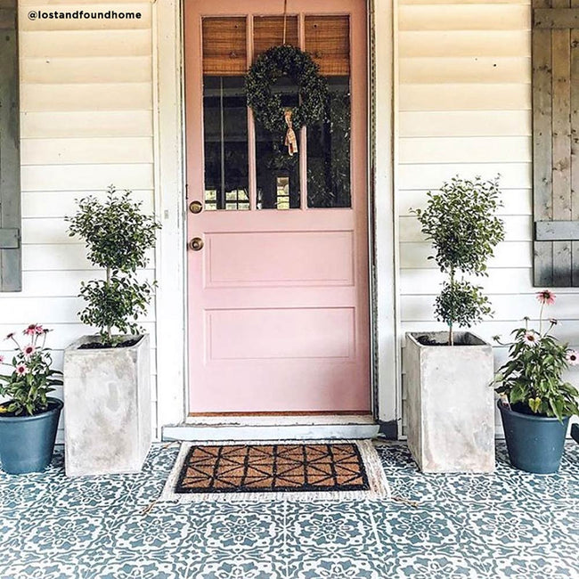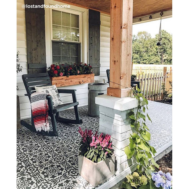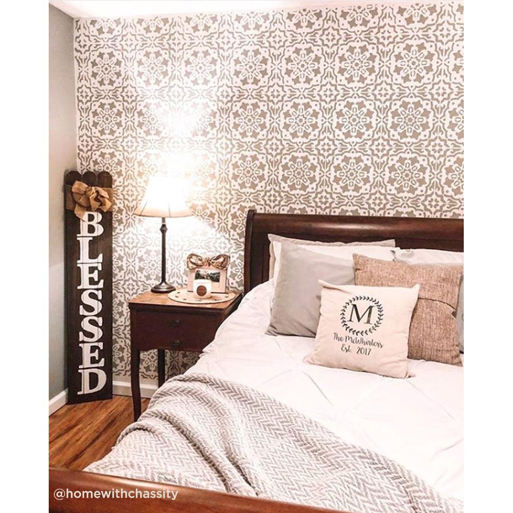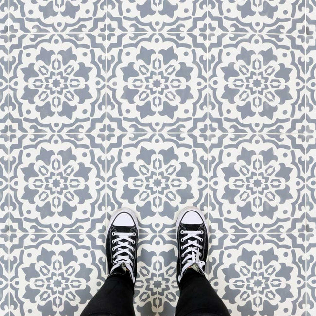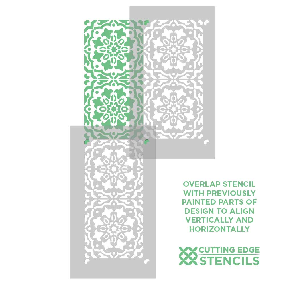 Cement tiles are all the rage in today's decor, but they are expensive and difficult to install. Luckily for a DIY enthusiast, we offer amazing tile stencils for floors, kitchen backsplashes and furniture! Now you can get that pinterest-worthy cement tile look for a fraction of the price of real tile. Our trendy Amalfi tile stencil features built-in registration for easy stencil alignment, and also comes with a free grout line stencil.