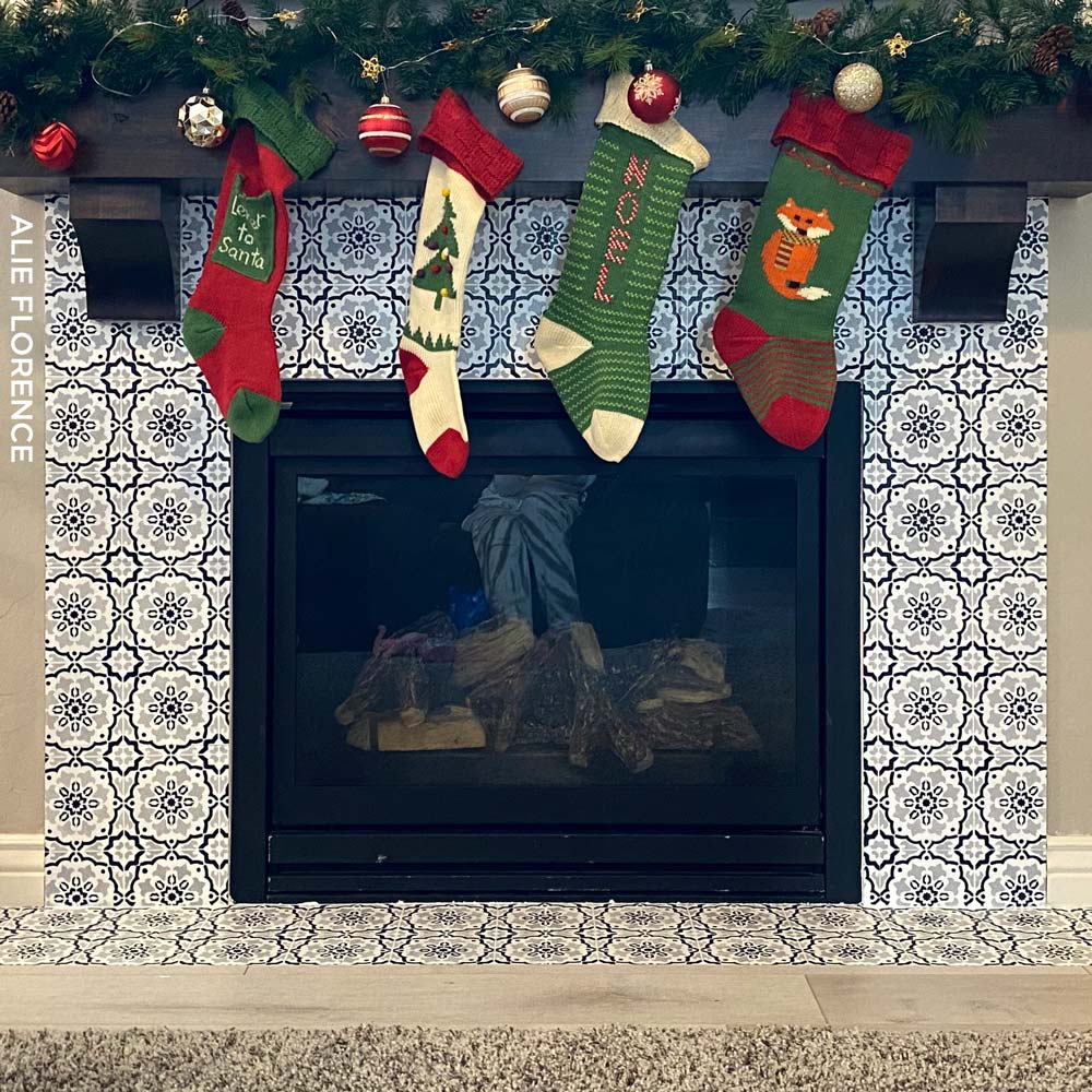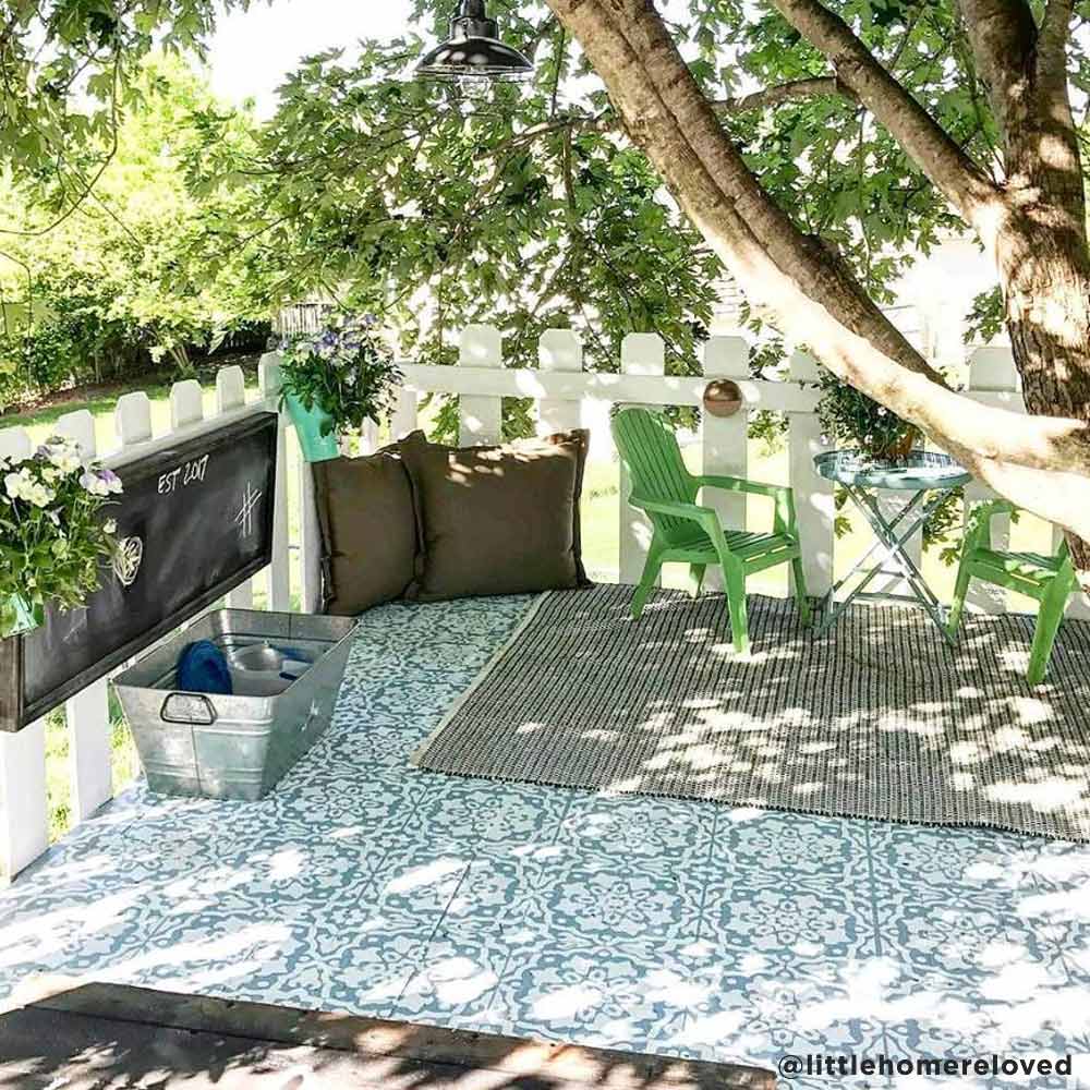 Larger tiles are best for the stenciled floors, but will look great on a wall too. Use smaller tiles for the backsplashes and stenciled stairs.