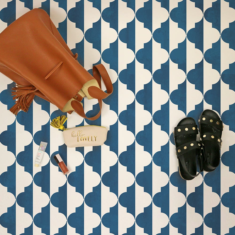 This beautiful Moroccan tile stencil looks stunning on an accent wall or as a tile floor. The dramatic mirror effect of this Anatolia Stencil Pattern makes it a real show-stopper. As a wall stencil it offers you an opportunity to perfectly match your existing decor with the paint of your choice - something you cannot do with pricey designer wallpaper. Our tile stencils are the perfect money saving alternative to the popular but expensive cement tiles. You can stencil your outdoor patio cement floor, or right over your old dated tile or linoleum floor! How to stencil a tile floor? – it’s easy even for beginners! Save big on your next room makeover by learning an easy stenciling technique and using stencils.