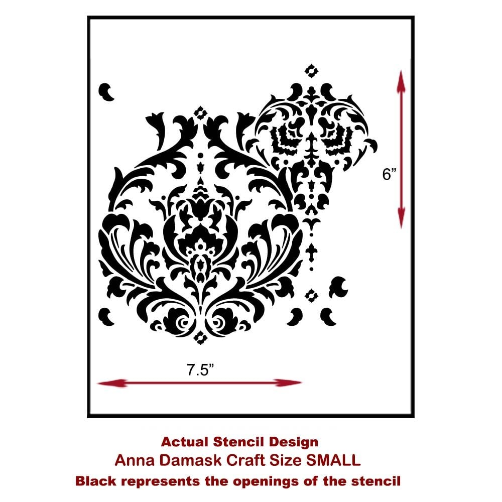 Damask stencil Anna is one of our most popular designs. This stenciled damask looks fabulous every time. Inspired by a classic damask design, this elegant brocade pattern looks so beautiful painted by itself or over a soft sponged background, or a metallic strie on a piece of recycled furniture, or even on pre-stretched canvas. Make lovely place mats or napkins with this charming design.