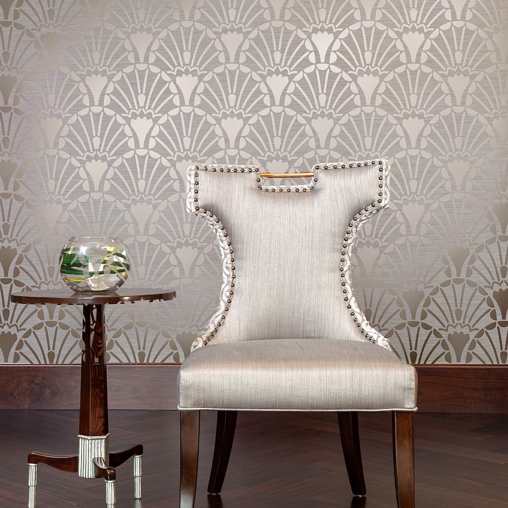 Our Decadence Wall stencil is a classic Art Deco design, that is sure to please anyone looking for the sophisticated style of that era. This Art Deco stencil pattern captures the style and opulence of the Art Deco period. We spotted this deco style design on a brass gate of a historic building in Lima and made a wall stencil based on it! This design makes a truly decadent accent wall or a stunning art deco wallpaper look for the whole room. Looks breathtaking stenciled in metallics over a dark base coat.