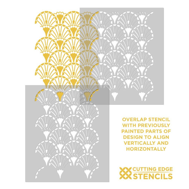 We recommend using any allover stencil with our Clip-on Stencil Level, (sold separately). Discover how easy it is to achieve perfectly level results without dealing with those bulky, hard to use bubble levels. We cannot recommend the Level enough, it's a real time-saver and is so handy!