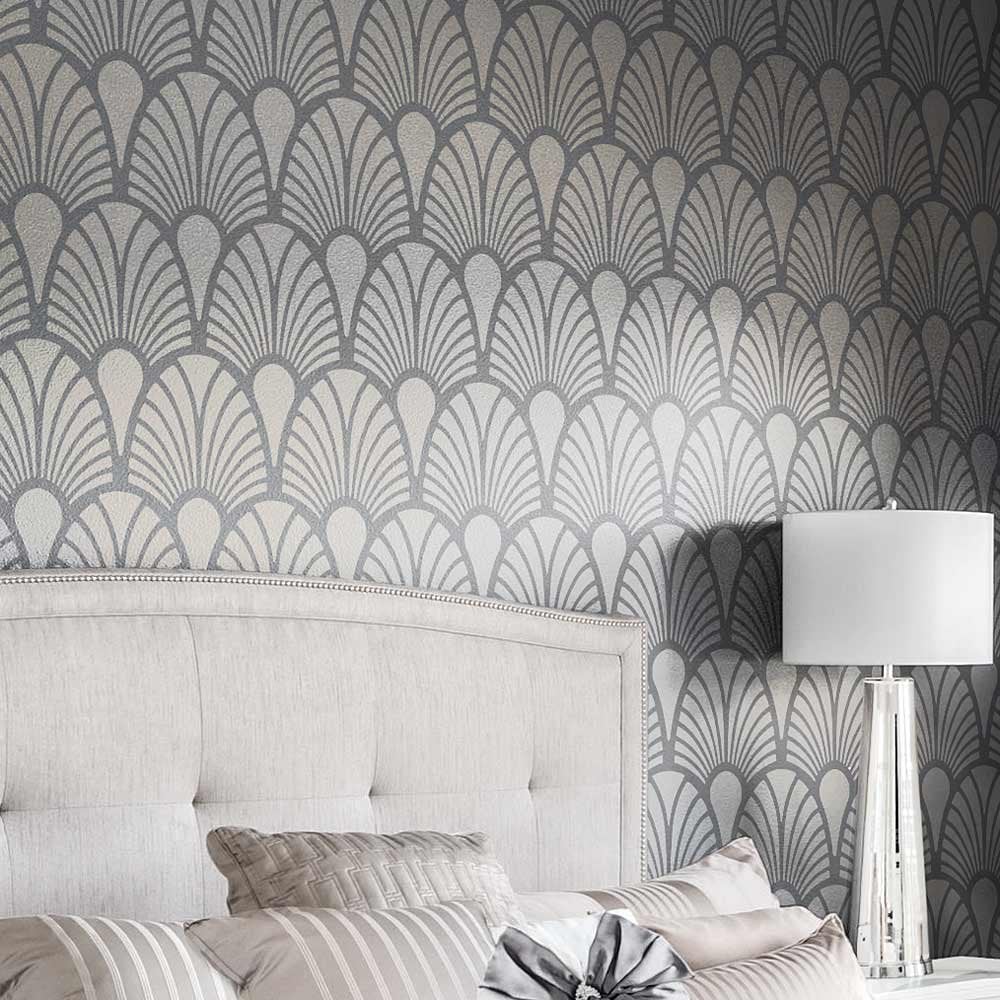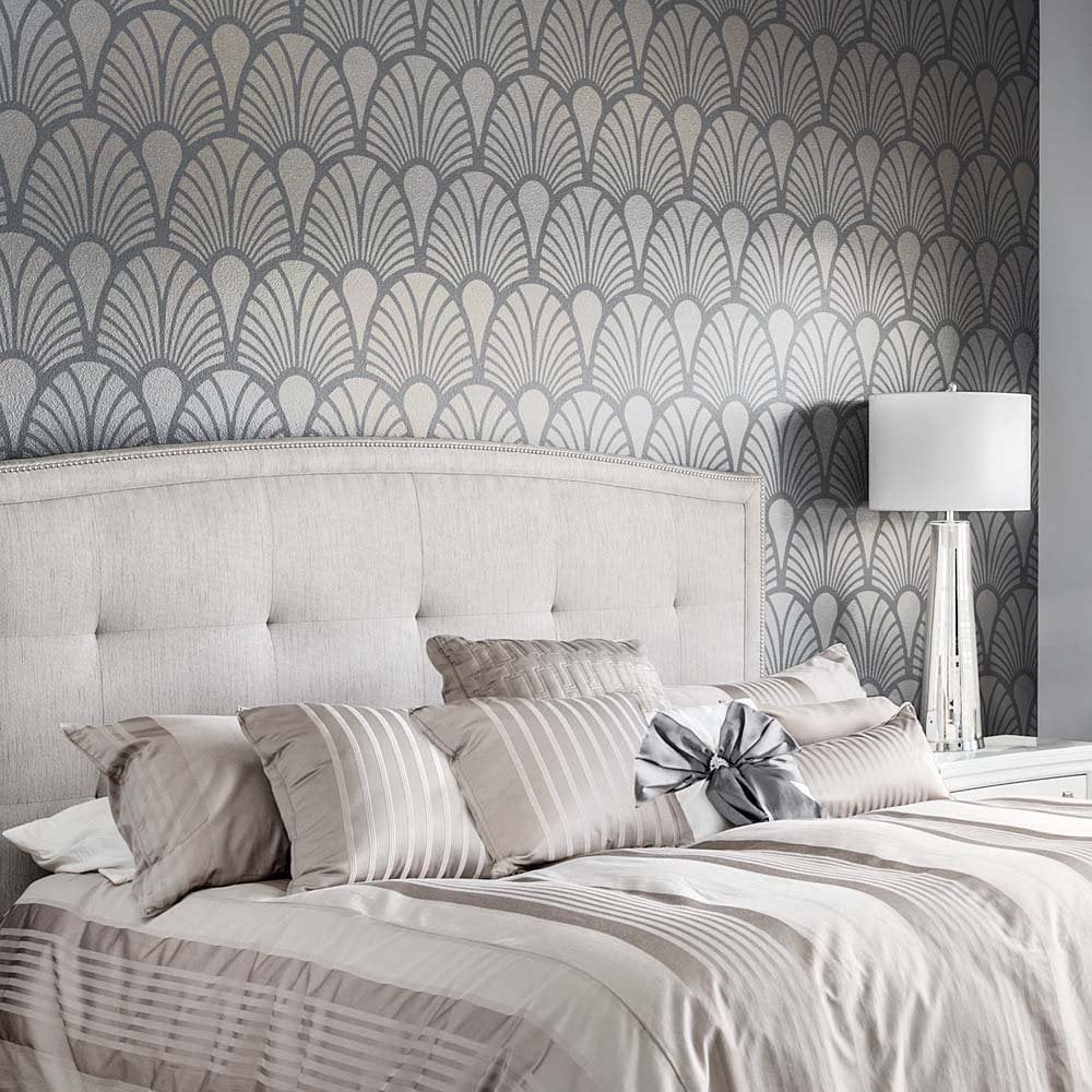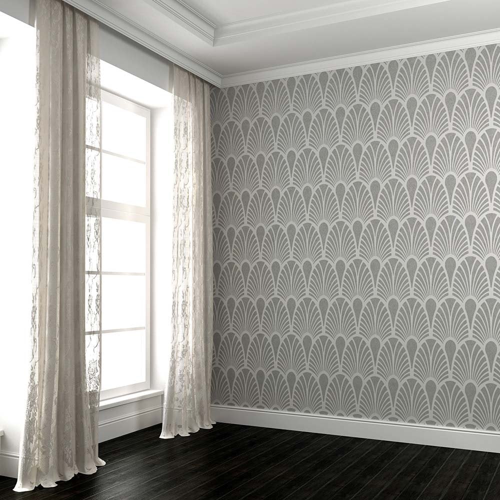 Art Deco is hot and our Empire Deco wall stencil design is no exception. Get the classic sophistication of the glamorous era with our latest deco design. Re-imagine a room in high-style, as an accent wall or as an economical alternative to chic wallpaper for the whole room. Add glamour and opulence of the Art Deco period with our unique, money saving stencil design. Looks breathtaking stenciled in metallics over a dark base coat.