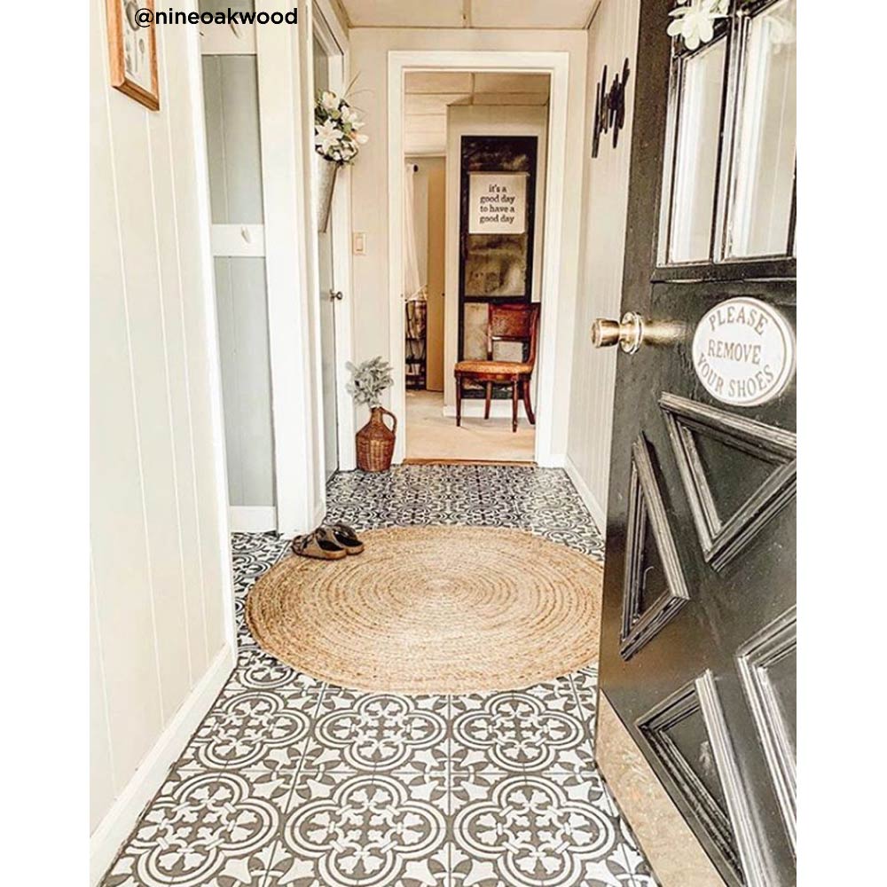 Larger tiles are best for the stenciled floors, but will look great on a wall too. Use smaller tiles for the backsplashes and stenciled stairs.