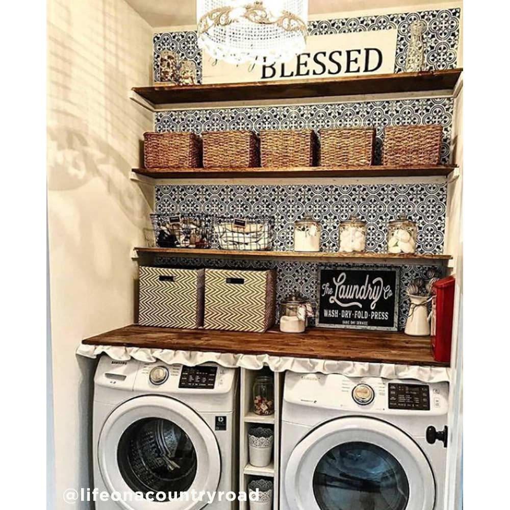 Our Augusta Tile stencil is a great choice for a trendy makeover! Based on traditional Portuguese Azulejos tile designs, this tile stencil is perfect for creating a gorgeous accent wall, kitchen tile backsplash, stenciled staircase, table top or floor! This spanish tile stencil works great for traditional and contemporary room settings - just use various color combinations. The most trendy color combos include soft greys and taupes and also variations of traditional deep blue color. Use stencil brushes for a multi-color look, or simply roll with a dense foam roller for a monochromatic effect. This stencil will definitely make a statement in your space! You can create really stunning stenciled stairs with this tile pattern! 6" size fits risers on most staircases.