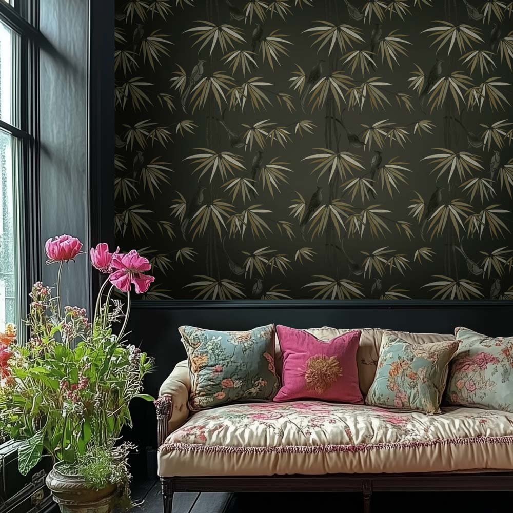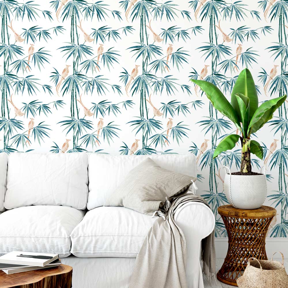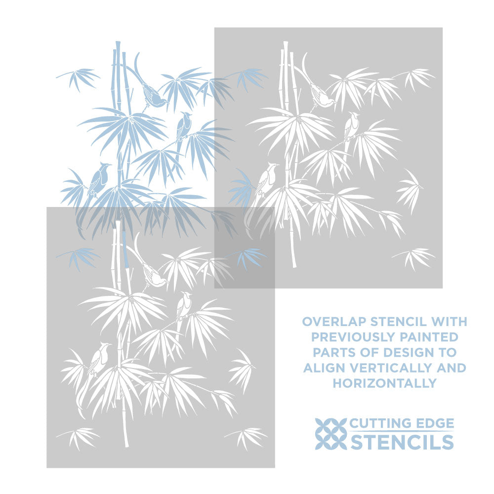 Bamboo and Birds Chinoiserie Wall Mural Stencil