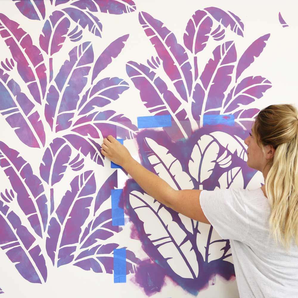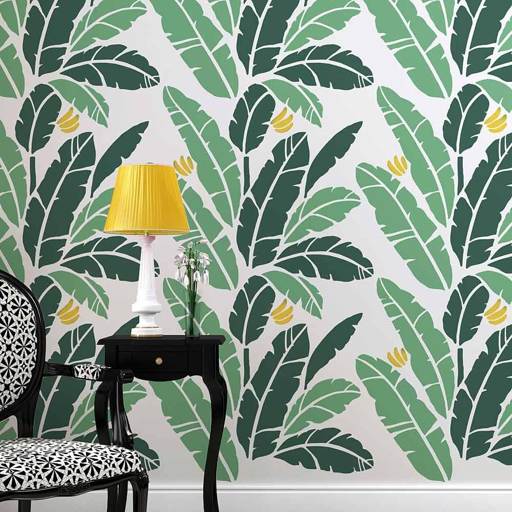 Banana Leaf Stencil Tropical Wallpaper Pattern Tropical Wall Decals Instructions