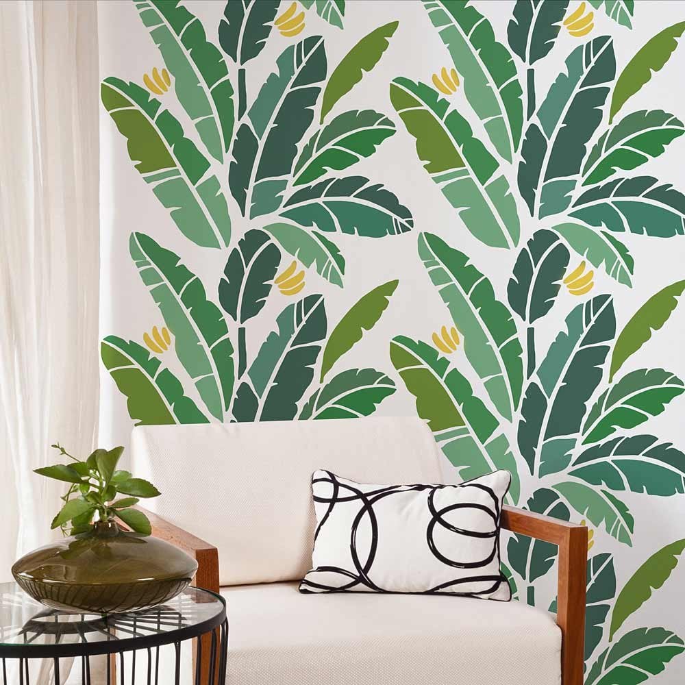 Tropical wallpaper stencil martinique banana leaf print palm wall pattern