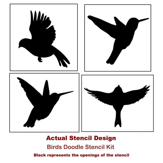 Simply trace the bird shapes with a pencil or fine black marker and add your own doodles, strokes and lines inside or outside the stencil shapes! Now these can be colored with pencils, markers, watercolors or left in monochrome.