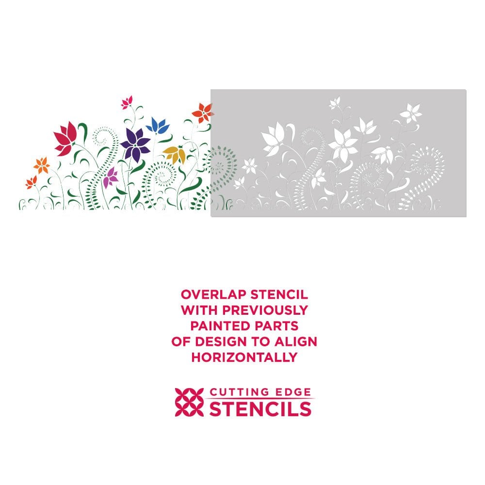 For alignment please refer to the pics. Stencil aligns horizontally for a seamless effect by slightly overlapping and locking in with previously painted parts. This stencil is easy to work with and even beginners get great results!
