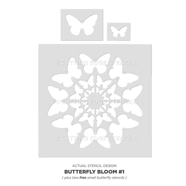 Stencil these Butterfly Blooms on a wall in your little girl's room or baby nursery! This butterfly stencil will also work great in Bedroom or Bath, or pretty much any wall space that needs some interest. If you love butterflies, this stencil is for you! This stencil will also works great on walls, pillows, curtains and furniture. Perfect for DIY decor.