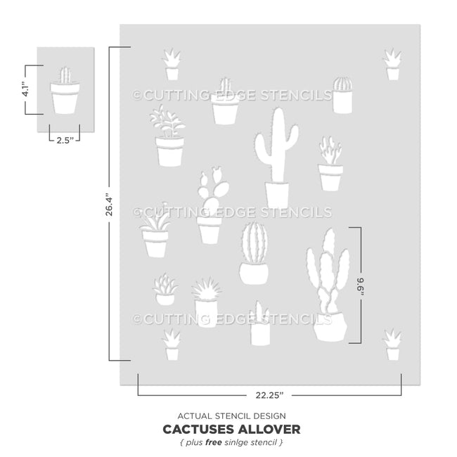 The stencil pattern comes with a FREE Single Cactus stencil - just so you can get into all the tight places when finishing your allover wall pattern.