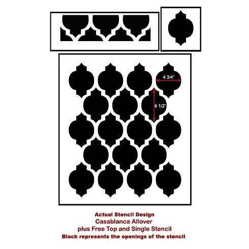 This Moroccan stencil comes with an additional FREE Top edge stencil: the upper part of the design cut as a smaller separate stencil. It makes it easy to fill the gaps close to the ceiling line.