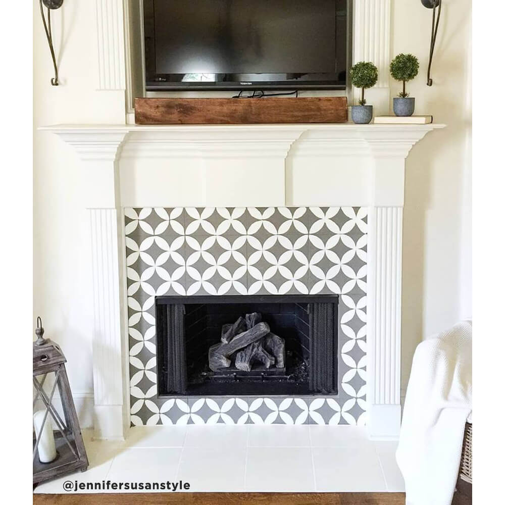 stenciled fireplace tile