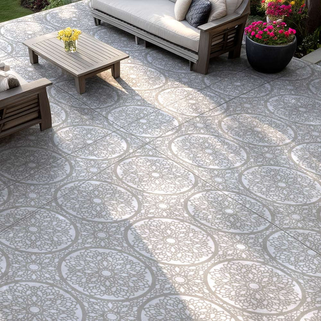 Give your outdoor area a stylish makeover with our Charlotte Patio Stencil, specially designed for painting concrete patios with ease and flair. Whether you're looking to enhance your backyard retreat or boost curb appeal, this large-format patio stencil makes transforming plain cement into patterned perfection a breeze.