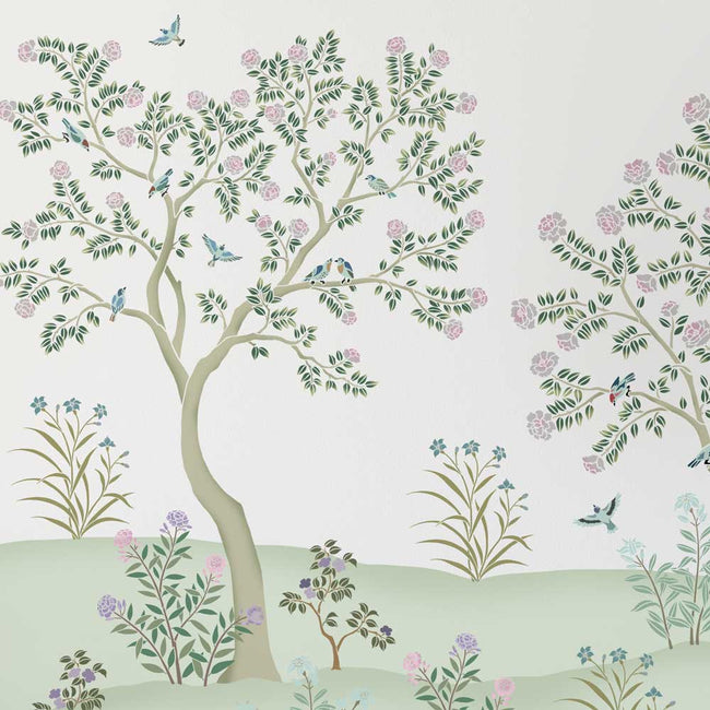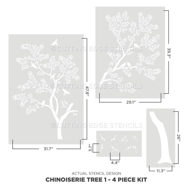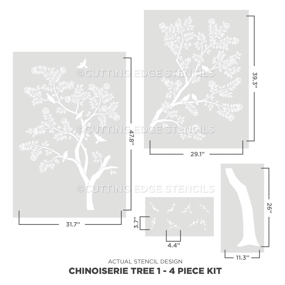 We're pround to introduce our Chinoiserie series stencils! Incredibly detailed and refined, these classical stencils will elevate your space like nothing else! In comparison with chinoiserie wallpaper, these mural stencils offer huge savings. Timeless designs, chinoiserie never goes out of style. These stencils are perfect for creating an exquisite chinoiserie murals with trees and birds. We offer these stencils as a large Chinoiserie stencil kit, or as individual stencils so you can mix and match and create your own beautiful chinoiserie garden mural with these exclusive stencils, created by expert stencil designer Janna Makaeva.