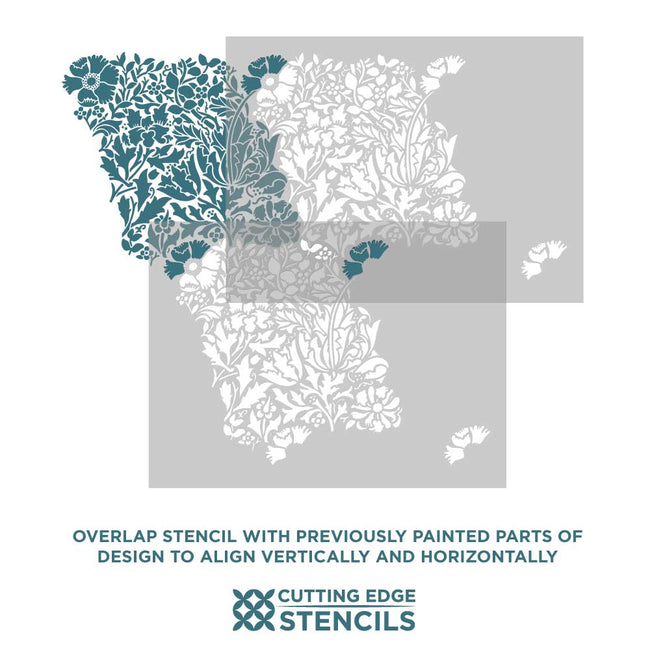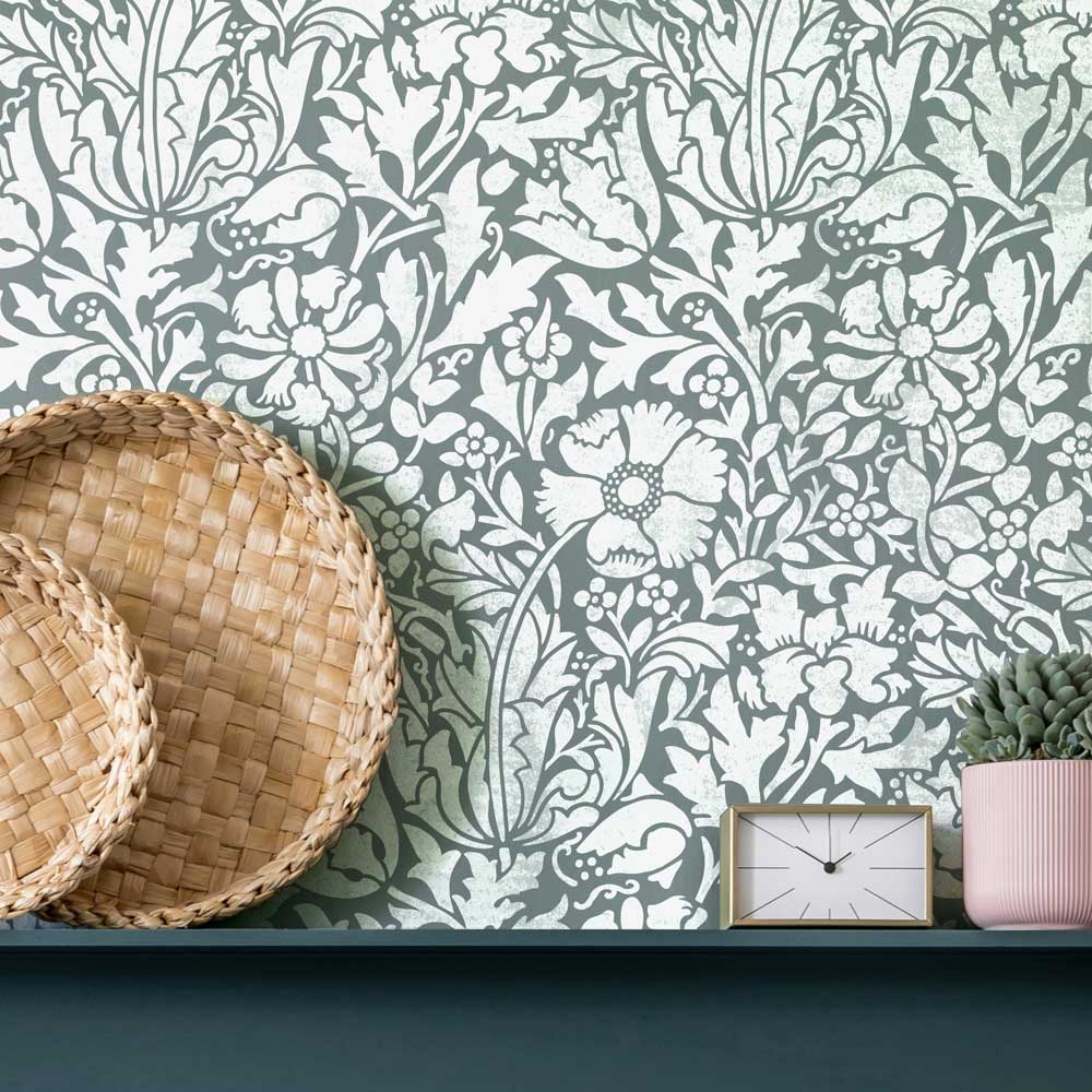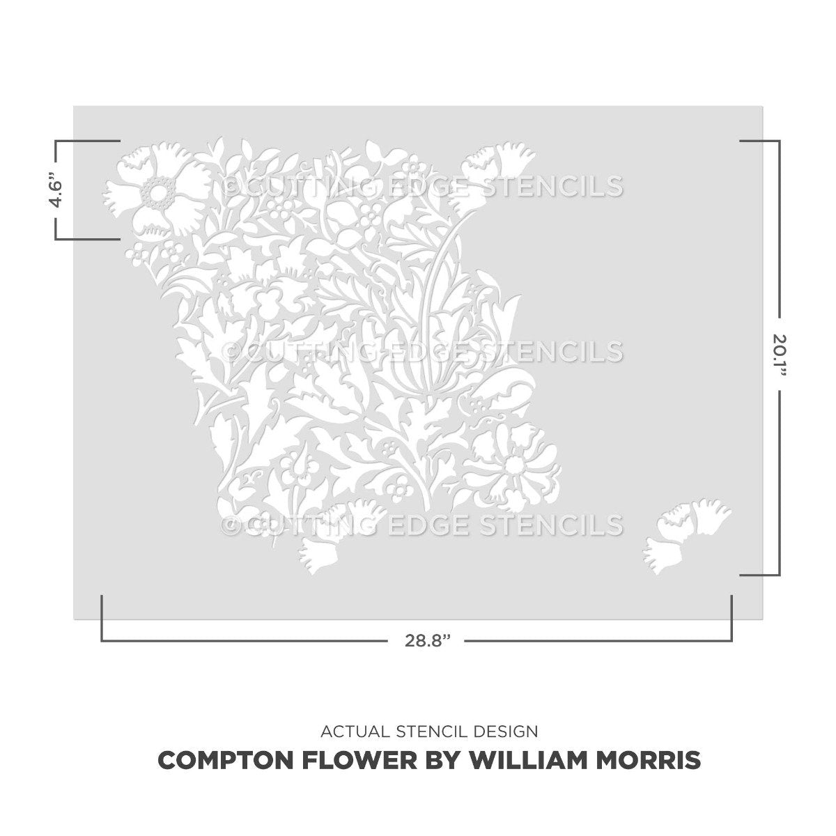 We are so excited to offer some of the iconic designs from the timeless William Morris collection! This beautiful Compton Flower stencil is the latest addition to our William Morris Wallpaper Stencil collection of beautiful vintage designs. This rich floral pattern fits all kinds of interiors and styles, from modern to grandmillenial, and is not just limited to Mission or Arts and Crafts interiors. This William Morris stencil pattern can be applied to a wall with a dense foam roller or with large stencil brushes. You can stencil in one color, or try picking various elements with an alternative color.