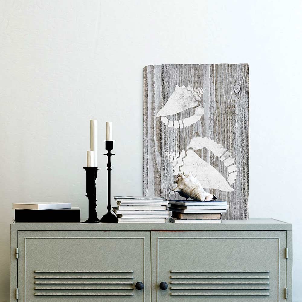 Check out our Conch Shell nautical stencil. Perfect for all nautical inspired interiors. This stencil is great for beach house decor and trendy stenciled craft projects. Simple and super easy to use, this Conch stencil can be used for stenciling furniture or for reclaimed wood craft projects.