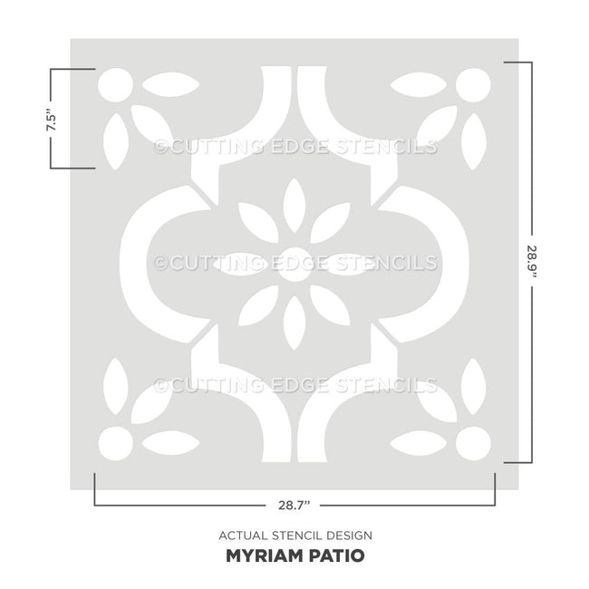Try our large Myriam Patio stencil for painting your concrete patio floor! Painting concrete floors is rather easy and straight forward process, and the transformation will be tremendous! From drab and boring cement floor to simply a fabulous space! You'll be sitting pretty on your beautifully painted cement patio and enjoying the season with family and friends. You can also stencil your unfinished basement floor with our large stencil patterns, or try stenciling a wood floor, cement garage floor, concrete front porch or a deck. Our Patio designs are cut as large stencils, so the stenciling process will go quickly! You can use regular latex house paint for painting concrete, or choose a special concrete and garage floor paint.