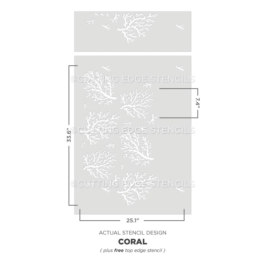 This Coral stencil pattern comes with an additional FREE Top Edge Coral stencil. Use it to fill the gaps close to the ceiling line after your main wall pattern is stenciled and to get into all the tight places when finishing your wall pattern.