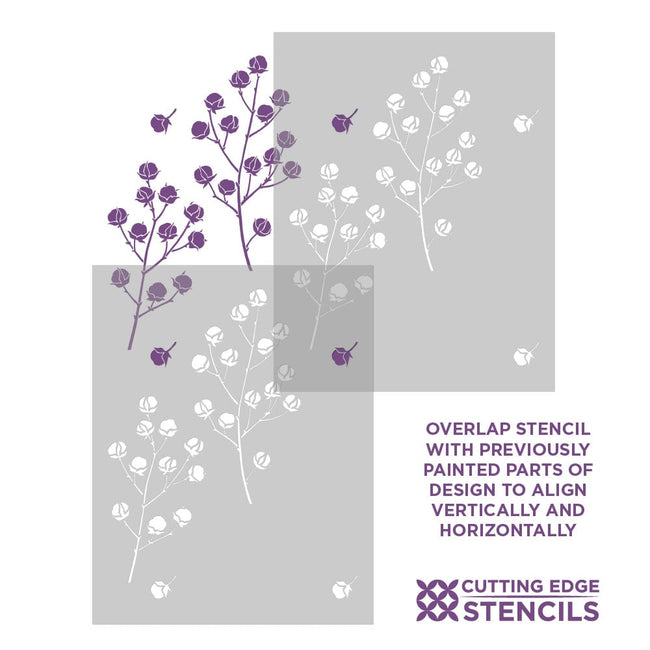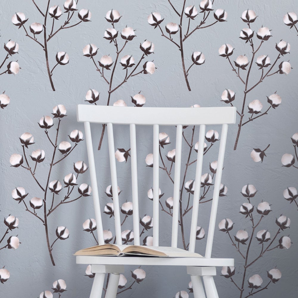 Stencil a sweet accent wall statement with our Cotton Wall stencil. This country stencil pattern offers warmth and style inspired by farmhouses and cozy cottages. When stenciled in earth tones, our Cotton farmhouse stencil brings a rustic beauty to your home. Pair this wall stencil design with contemporary furniture for a modern farmhouse look!