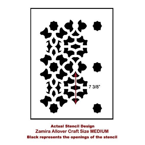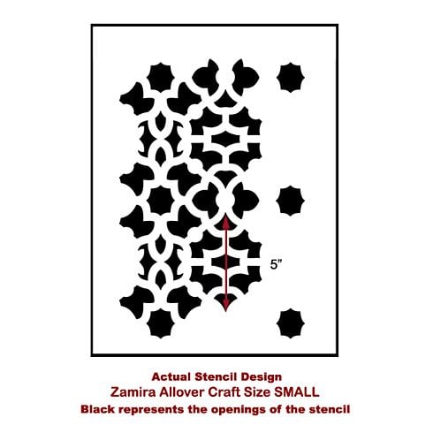 Our craft size stencil Zamira is perfectly sized for smaller DIY home decor projects where a wall stencil would be too large. This design is a part of our large collection of Moroccan stencils.