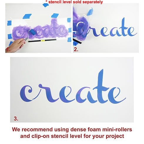Motivating and inspiring wall phrase stencil "Create". There is a saying: "If walls could talk"¦". Well, now they can with our new wall quote stencil collection of inspiring phrases that can be stenciled not only on walls, but on fabrics and pillows, furniture and floors, or even on canvas to make your own stenciled wall art. These reusable stencils are great choice for DIY decorators: easy, fast and fun!