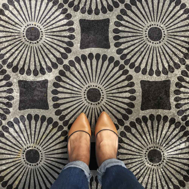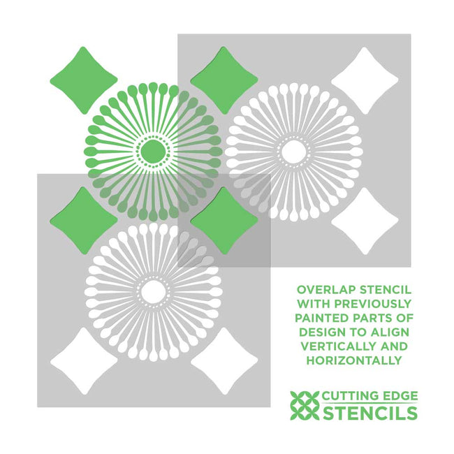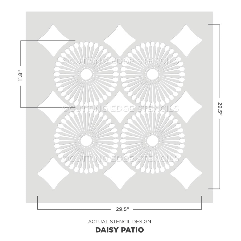 Feel the warmth of our Daisy Patio Stencil when you enter the room! This cheerful floral stencil features a lovely daisy motif, creating an eye-catching element to your space! Stencil this floral pattern over your boring patio, outdated linoleum or cement floors. You can also use this modern floral stencil to paint an accent wall pattern. This floral tile stencil is meant to shine, so add vibrant colors to the stencil pattern to give it life! This stencil comes with built-in registration marks for easy alignment. Get a Pinterest-worthy tile floor for a fraction of the price of real tile!