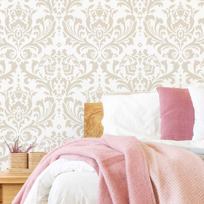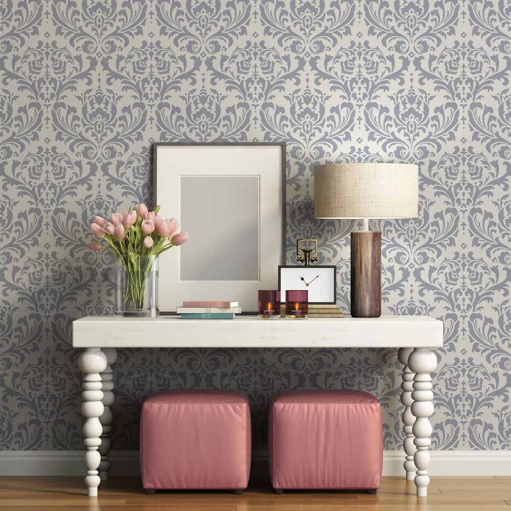 Registration is built into stencil design for ease of installation, simply use previously painted parts of the damask design to align it.