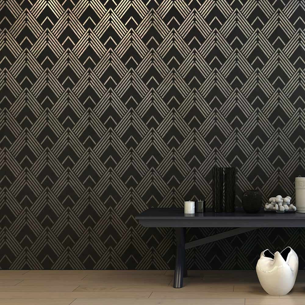 Our new art deco Lexington Allover stencil design makes a bold statement with classic deco styling. Bring the look of a gone-by era with this beautiful art deco design. Use metallic colors over a dark base-coat to create an impressive, more forward look or choose softer and close tones for a more muted and subtle look. Our stencil designs are the perfect alternative to expensive wallpaper and a lot more fun and easy to do!
