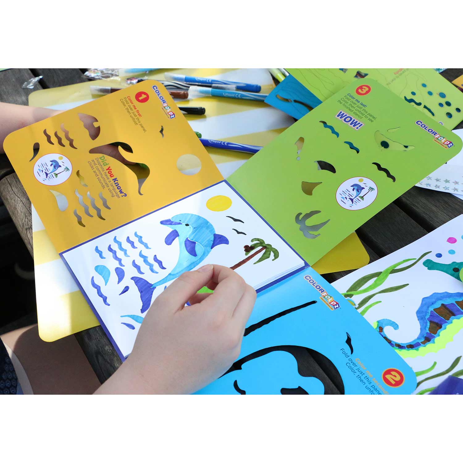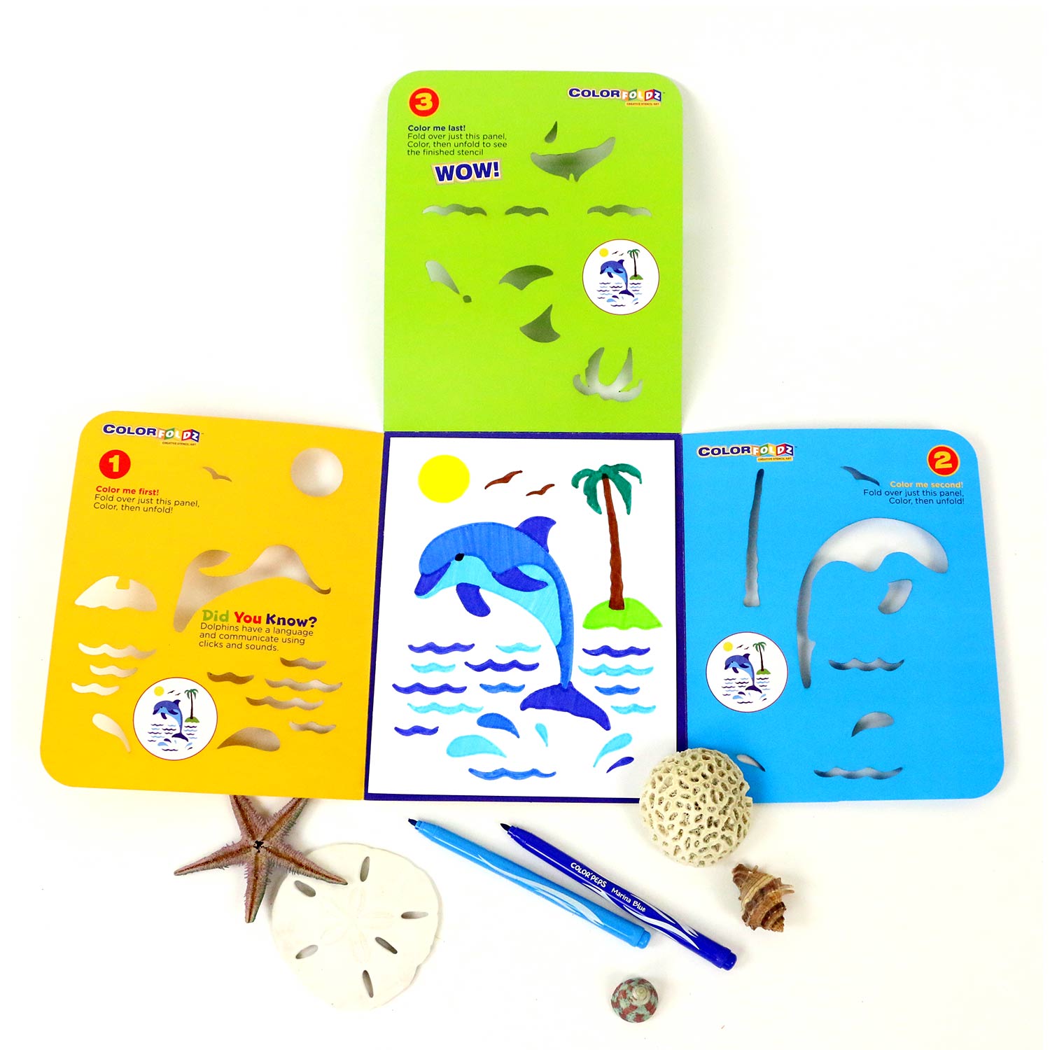 Love Dolphins? Our Dolphin ColorFoldz stencil is perfect for the little dolphin lover! Kids love to create a beautiful multi-color pictures with markers or colored pencils!