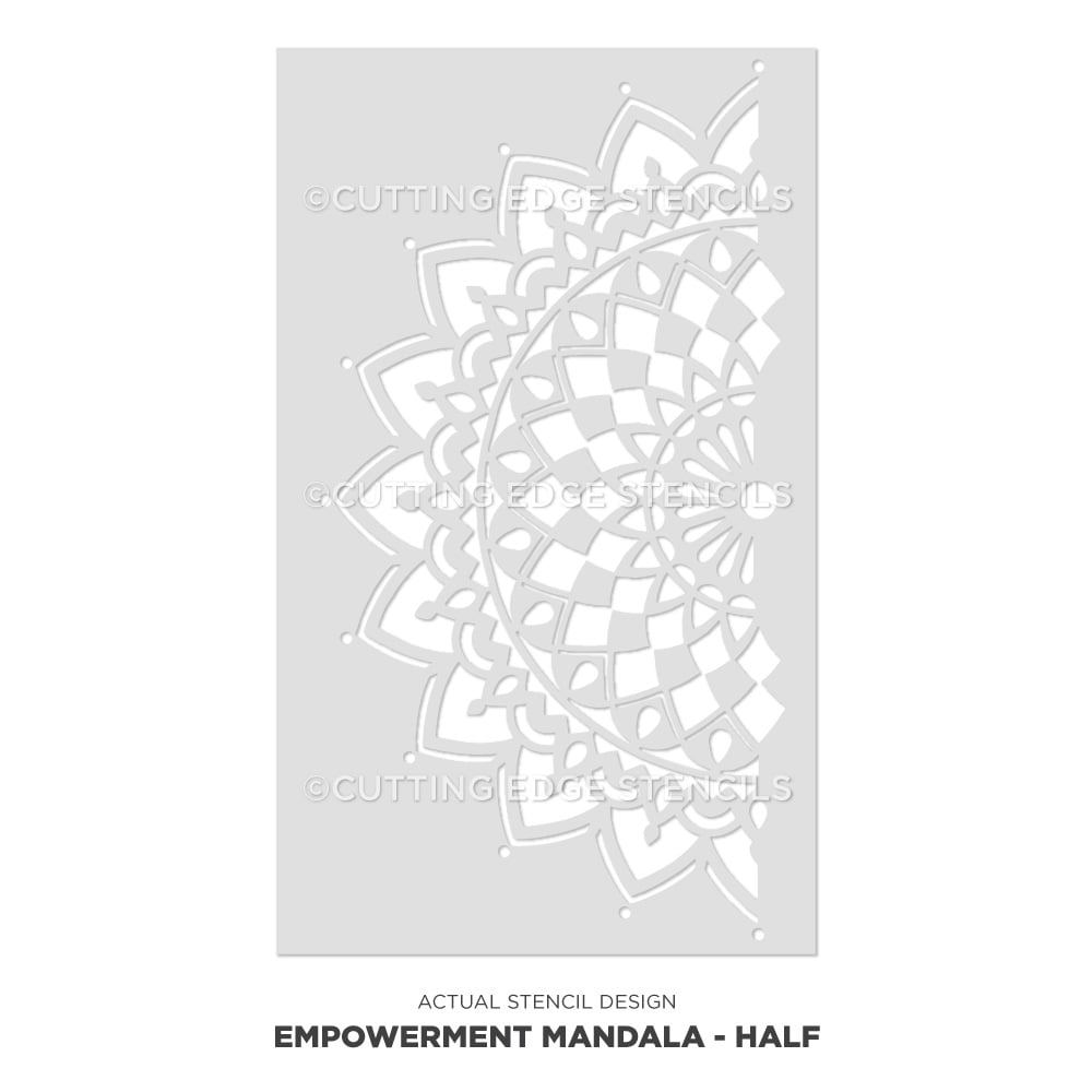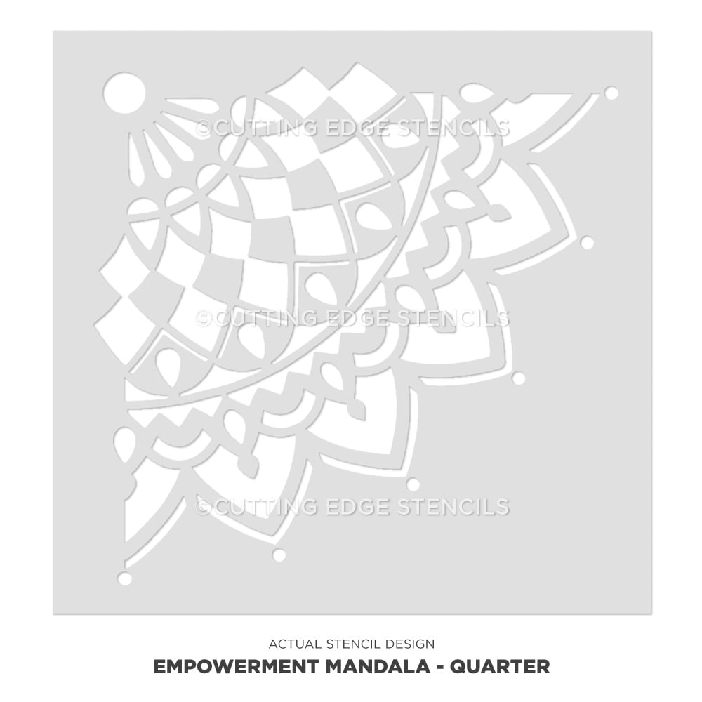 Mandala stencils are very popular in today's decorating. Mandalas fit many decorating styles, from modern and boho to farmhouse! With our Empowerment mandala stencil, you can quickly add beauty and pattern to any plain wall or floor. May this beautiful design bring you true empowerment! :) Our large mandala stencils can be painted in one or multiple colors to match your decor. Mandala stencils are quite easy and fast to use despite there intricacy. Mandalas are a perfect choice for a first time stenciler. Our mandalas are original hand drawn designs created by stencil designer Janna Makaeva, exclusive to Cutting Edge Stencils.