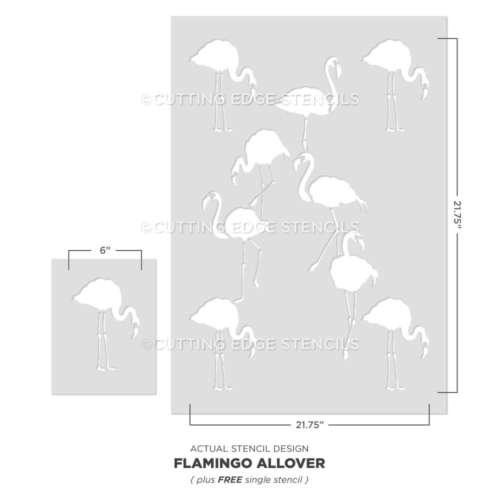 The stencil pattern comes with a free Flamingo stencil - just so you can get into all the tight places when finishing your allover wall pattern.